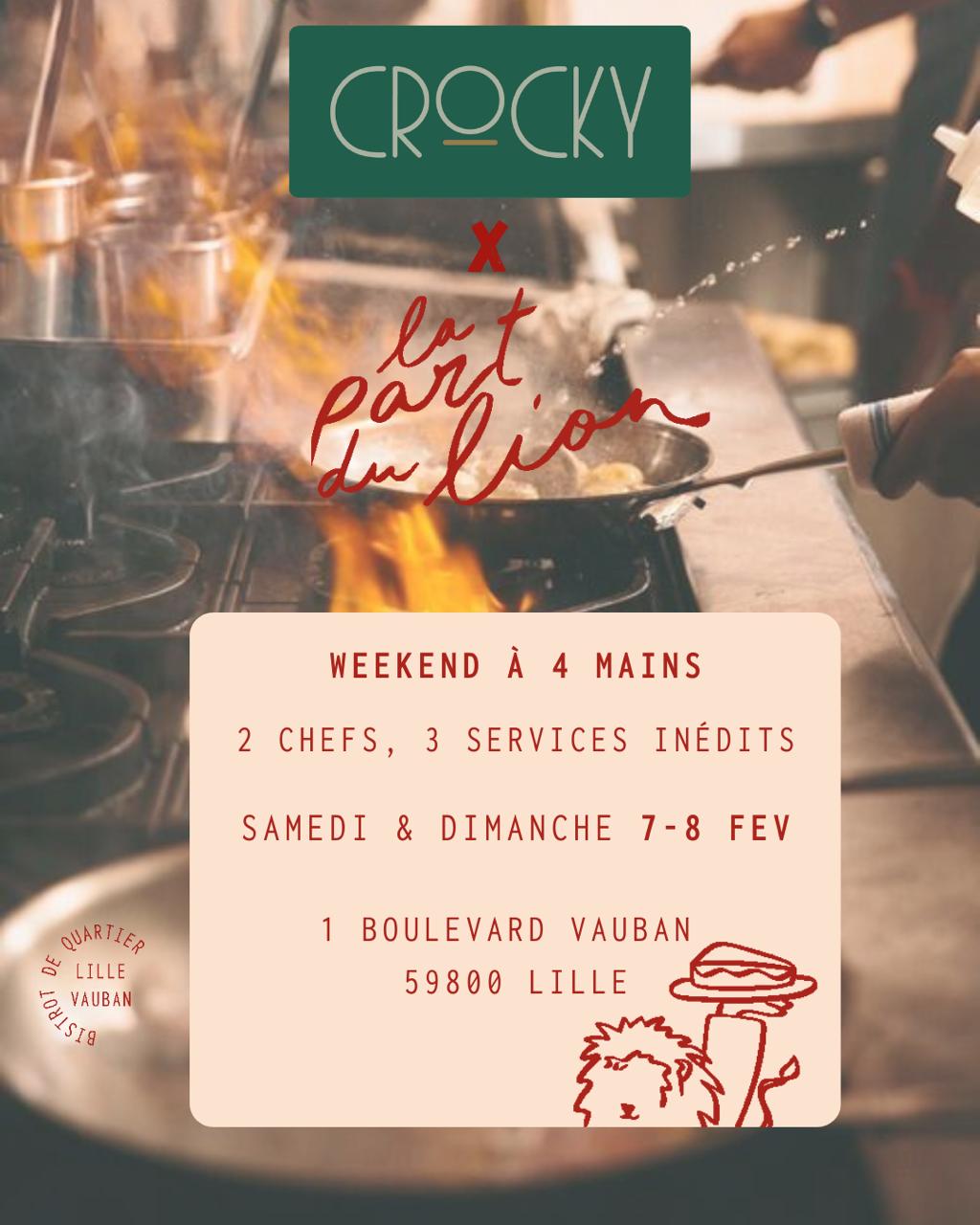 Charlotte (La Part du Lion) & Quentin (Crocky) fusionnent leurs univers pour créer l'éphémère. Une sélection des meilleurs produits, leur instinct et une bonne dose d'audace pour vous pondre un menu exclusif le temps d'un week-end.